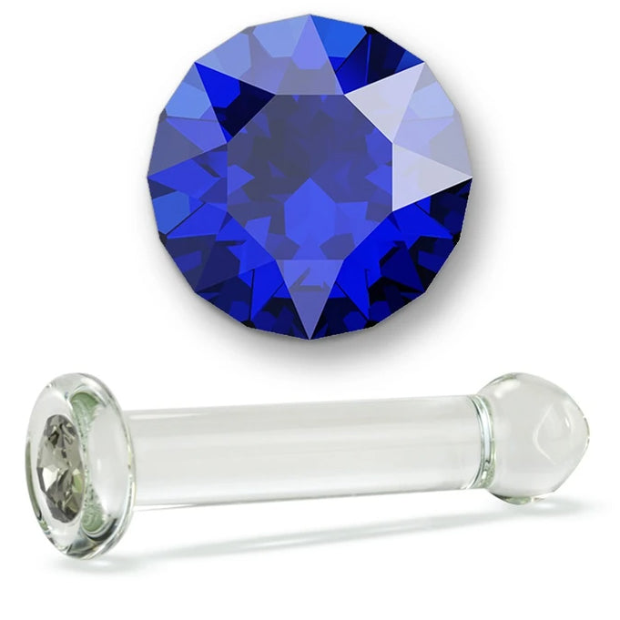 Hand-blown borosilicate glass dildo with a glimmering jewel on the end. Not anal safe.