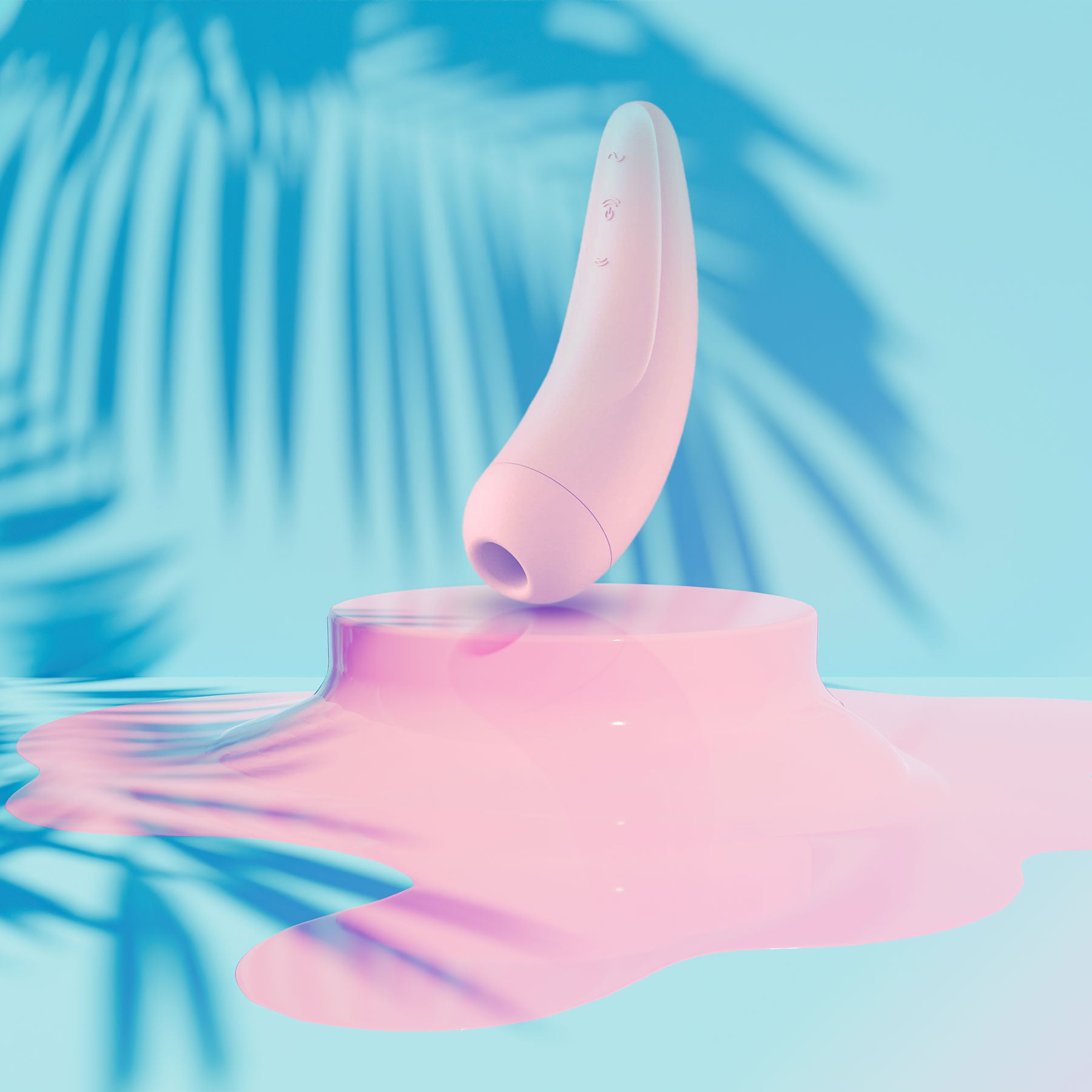 Description: The Satisfyer Curvy 2+ is a pressure wave vibrator that gently surrounds your clitoris with its soft silicone head and catapults you to breathtaking climaxes with no-contact pressure wave stimulation and luscious vibrations. Choose between the exciting intensity levels of the pressure waves and combine them with the vibration programs – it’s so easy to let this pleasure-giver flood you with waves of excitement. Do you like to enjoy your sexual wellness in the shower or in a soothing bath? Perfect! The Curvy 2+ is waterproof and can come along with you on your little adventure. If it loses power, you can recharge the lithium-ion batteries in an easy and environmentally friendly way with the included USB magnetic charging cable. Did we mention it has an app?!
