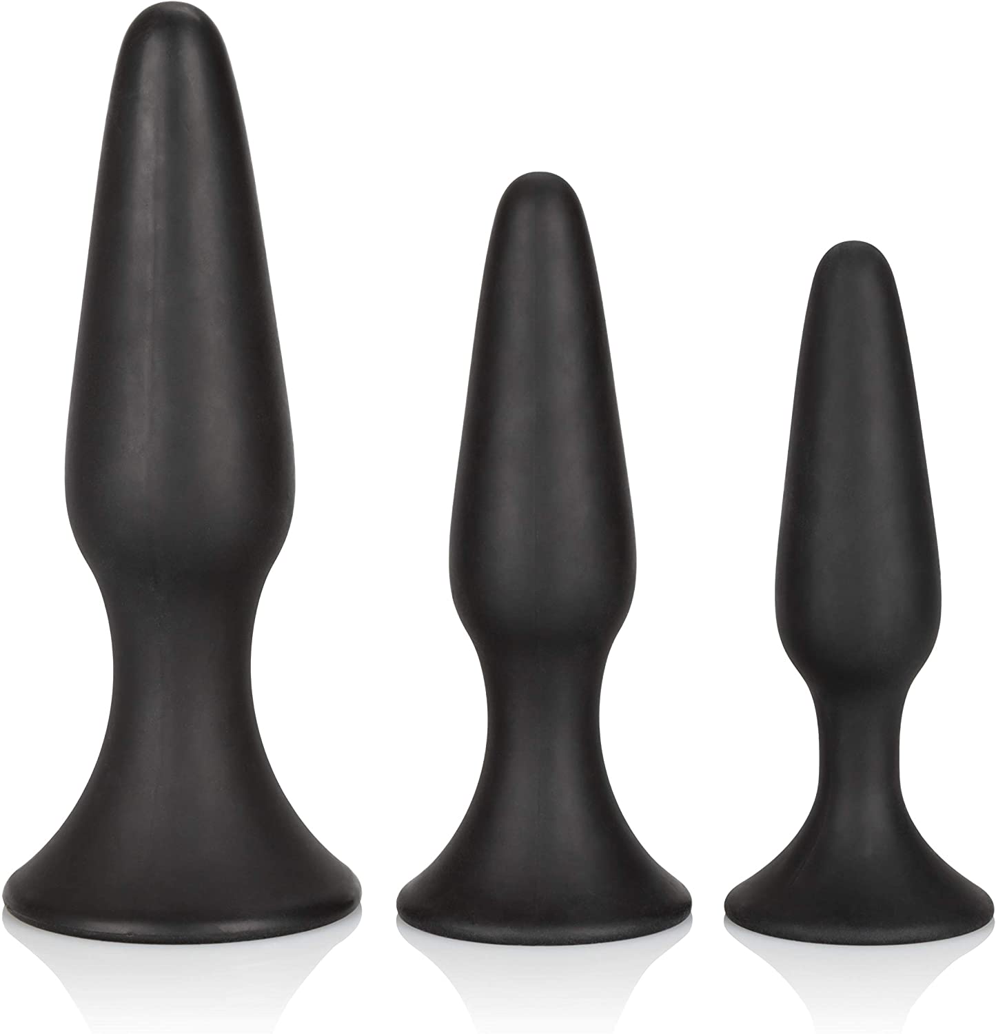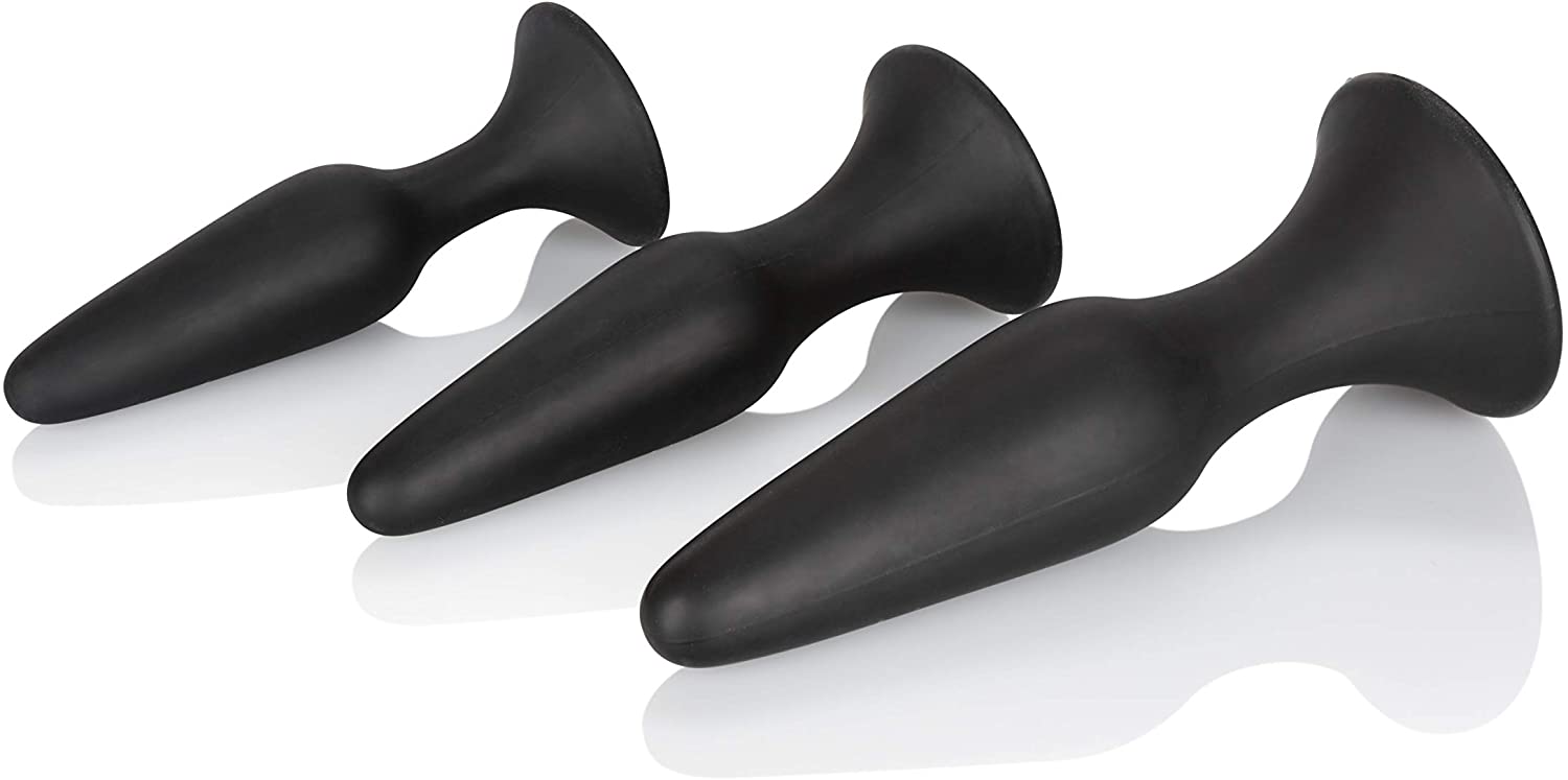 Description: The Ultimate anal kit has all the body-safe devices you need for a comfortable anal experience. With 3 graduated plugs in smooth silicone, coupled with an ABS plastic douche you can be clean and keep plugging along. The Plugs come with a suction cup base so you can take them into the shower, or stick them to any flat surface. This Ultimate Kit has everything you need and it's all for you!